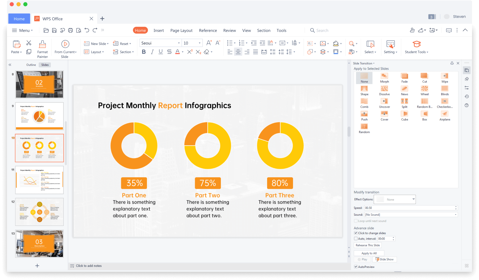 借助 WPS Office,您可以访问超过 100,000 个模板的海量集合,满足您的 Word、Excel、PowerPoint 和 PDF 要求。使用我们的一体化办公解决方案和人工智能驱动的模板,在几分钟内简化您的工作流程。