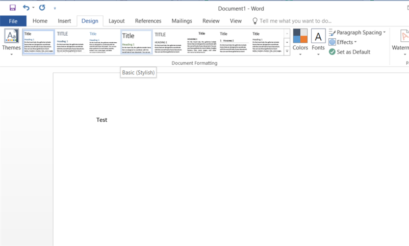 1. 您必须打开 Word 文档,然后您将转到“设计”选项卡。