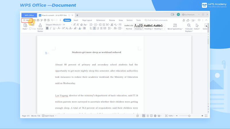 在WPS文档中轻松将Word文档转换为PDF文件。你明白了吗?