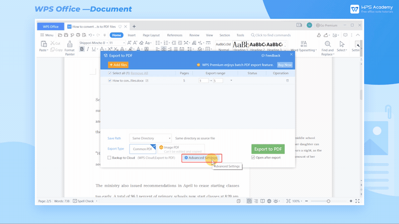 WPS还提供了更多将Word文档转换为PDF的高级设置,满足大多数用户在文档转换的其他方面的需求。